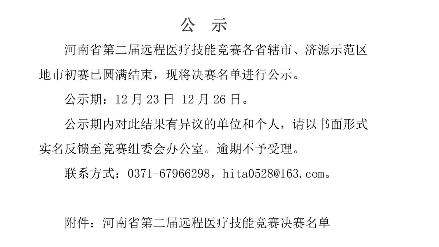关于河南省第二届远程医疗技能竞赛决赛选手名单的公示