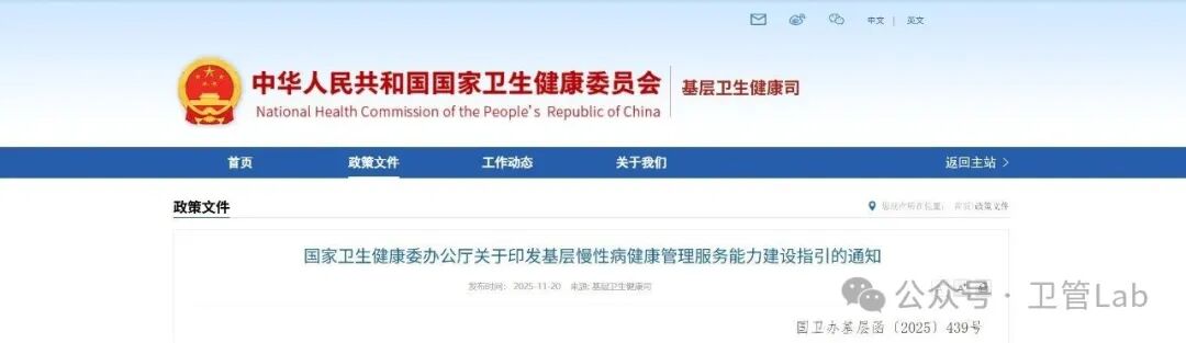 国家卫生健康委办公厅印发《基层慢性病健康管理服务能力建设指引》